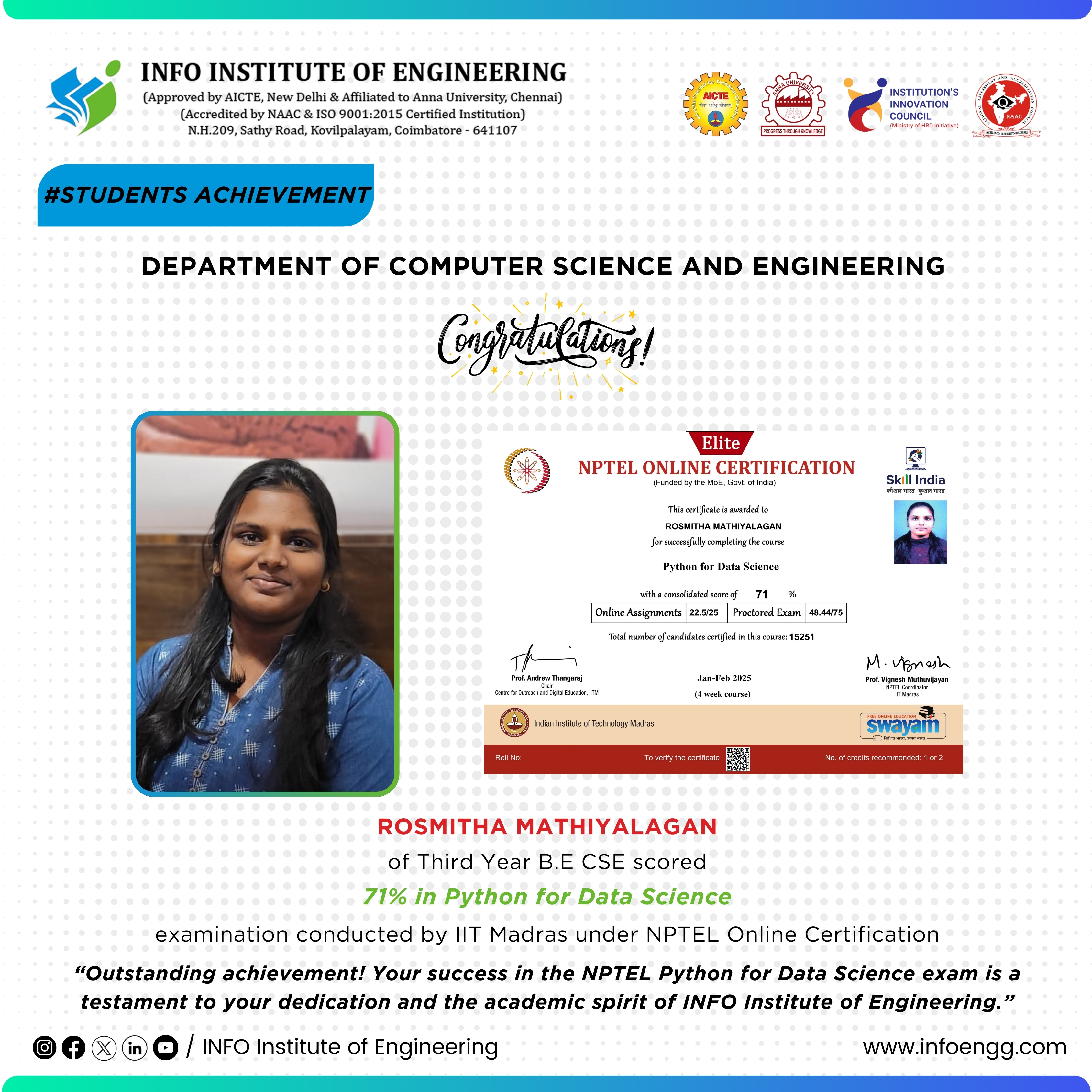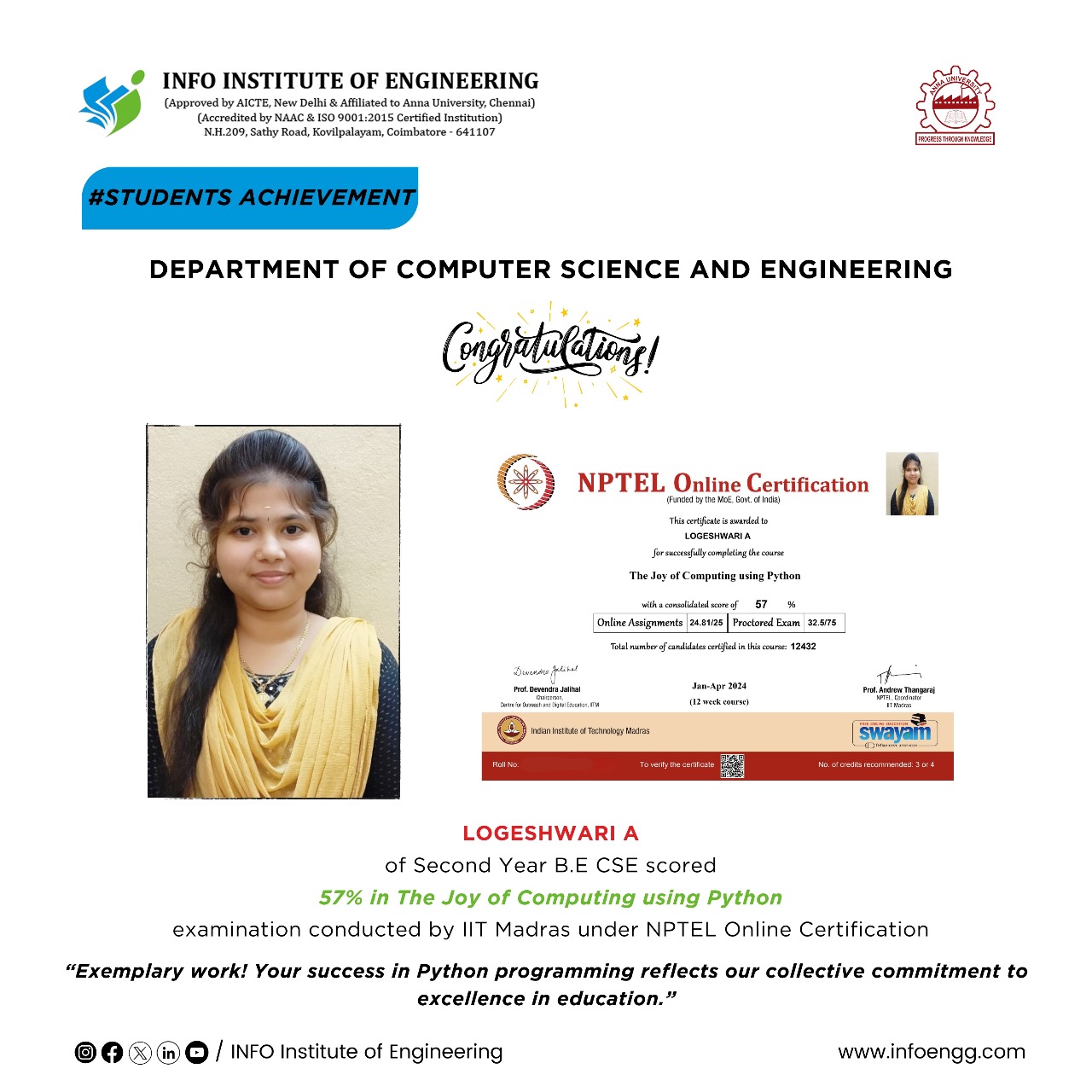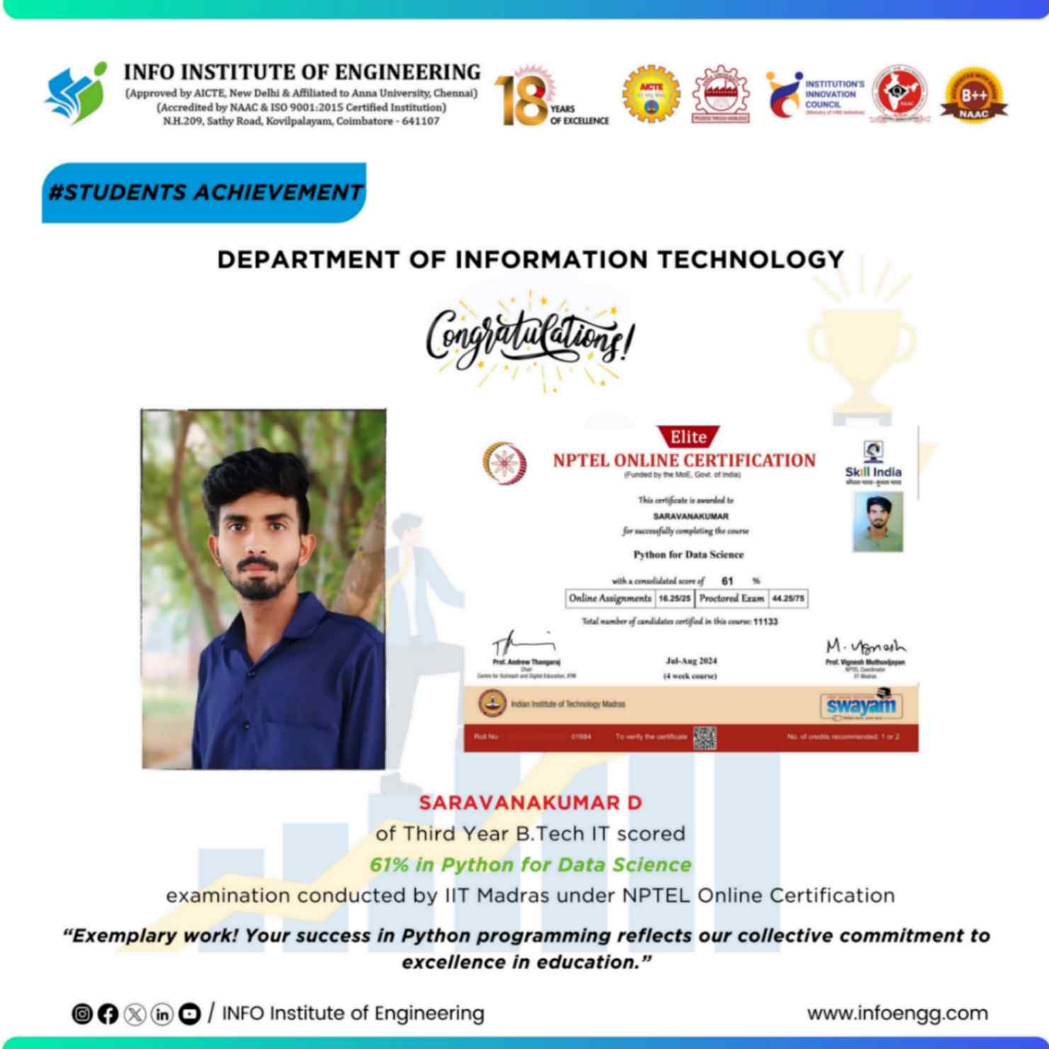 .We're thrilled to announce that our student, Pradeep S (III year CSE), has showcased exceptional skills by participating in Web Designing and securing the First Prize at the National Level Technical Symposium Xplosion 2K24, organized by the DOIT Association, Department of Information Technology, Sri Ramakrishna Institute of Technology(SRIT), Coimbatore. Our heartfelt congratulations and kudos to Pradeep S