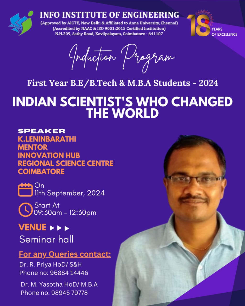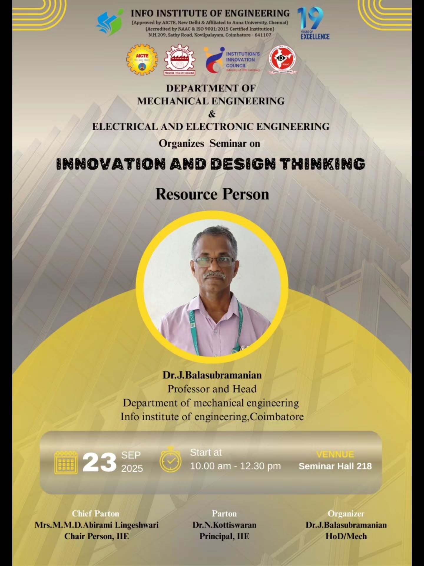 This seminar aims to ignite creativity, nurture problem-solving skills, and empower students to approach challenges with innovative solutions that shape the future of engineering.
