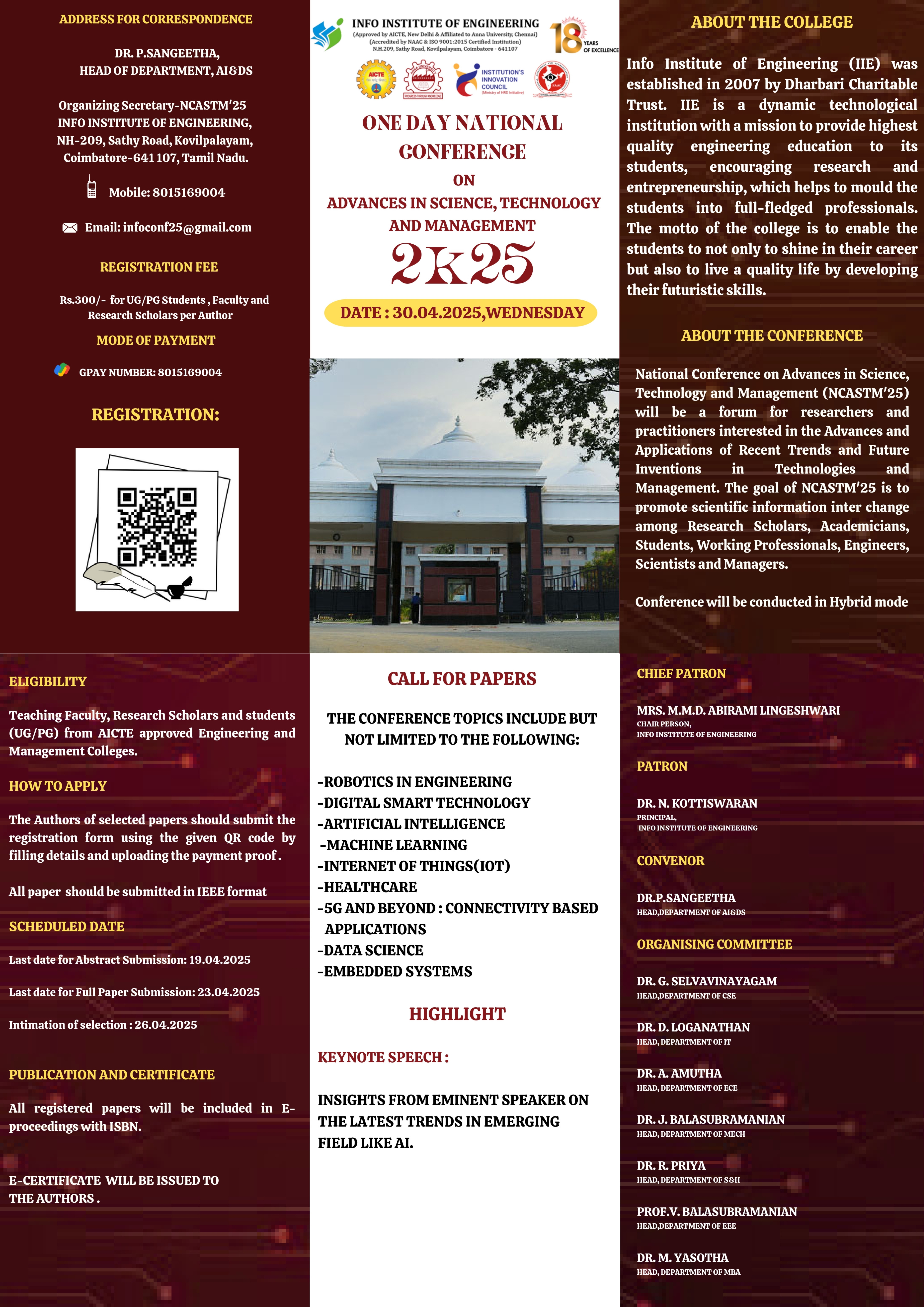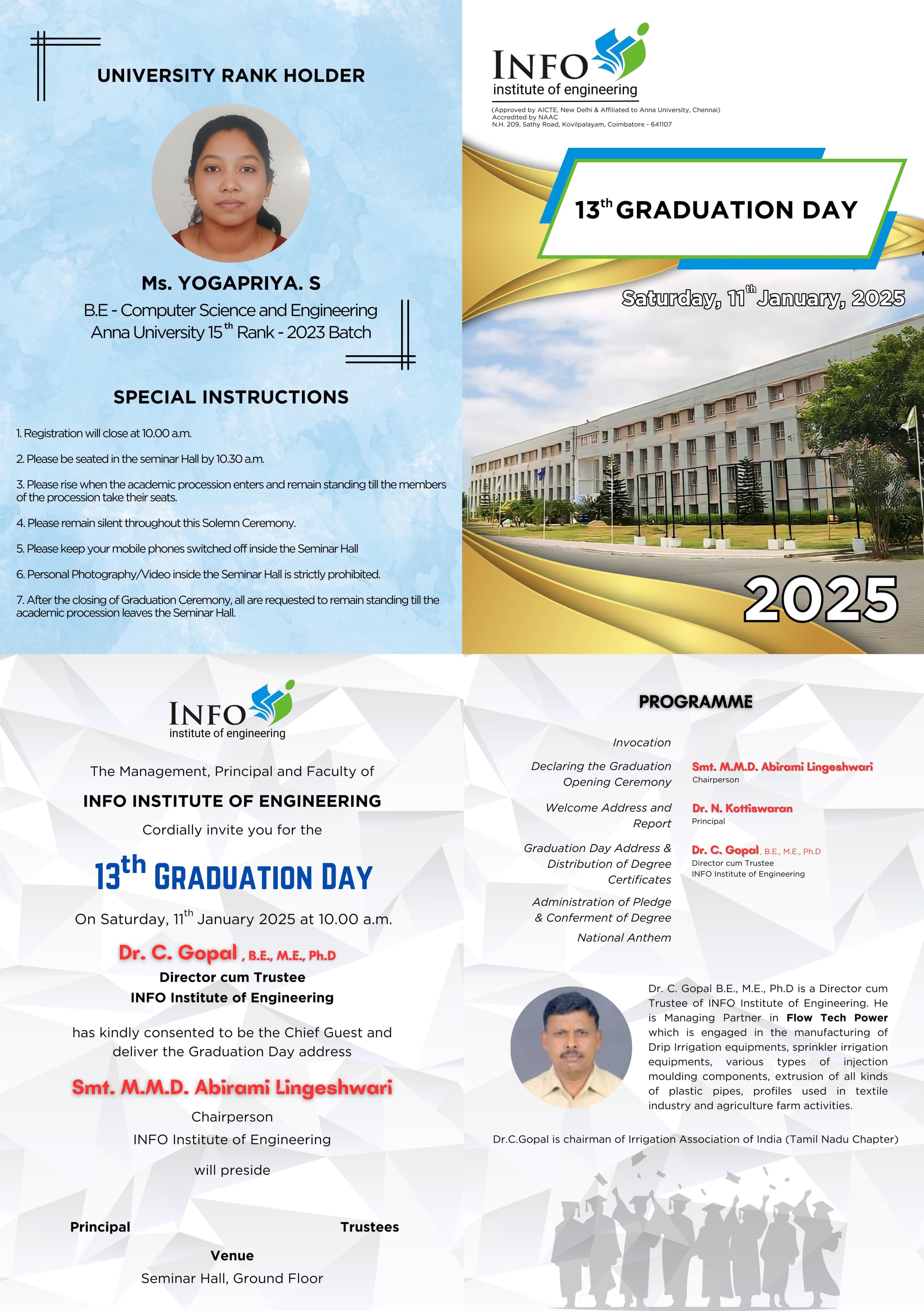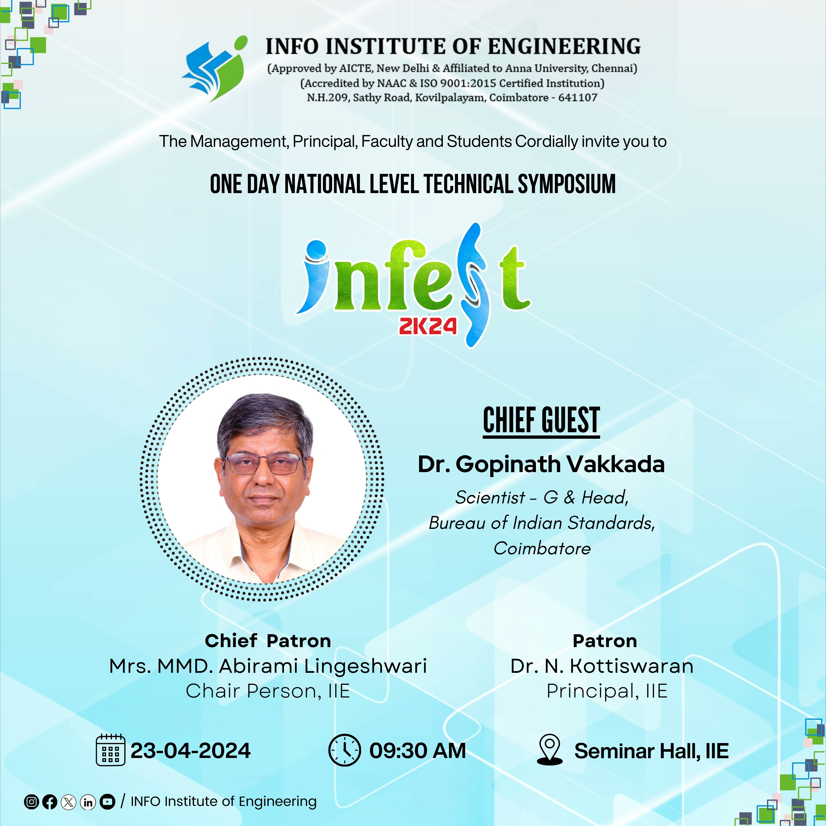 Guest of Honor: Dr. N. Kottiswaran, Principal, INFO Institute of Engineering