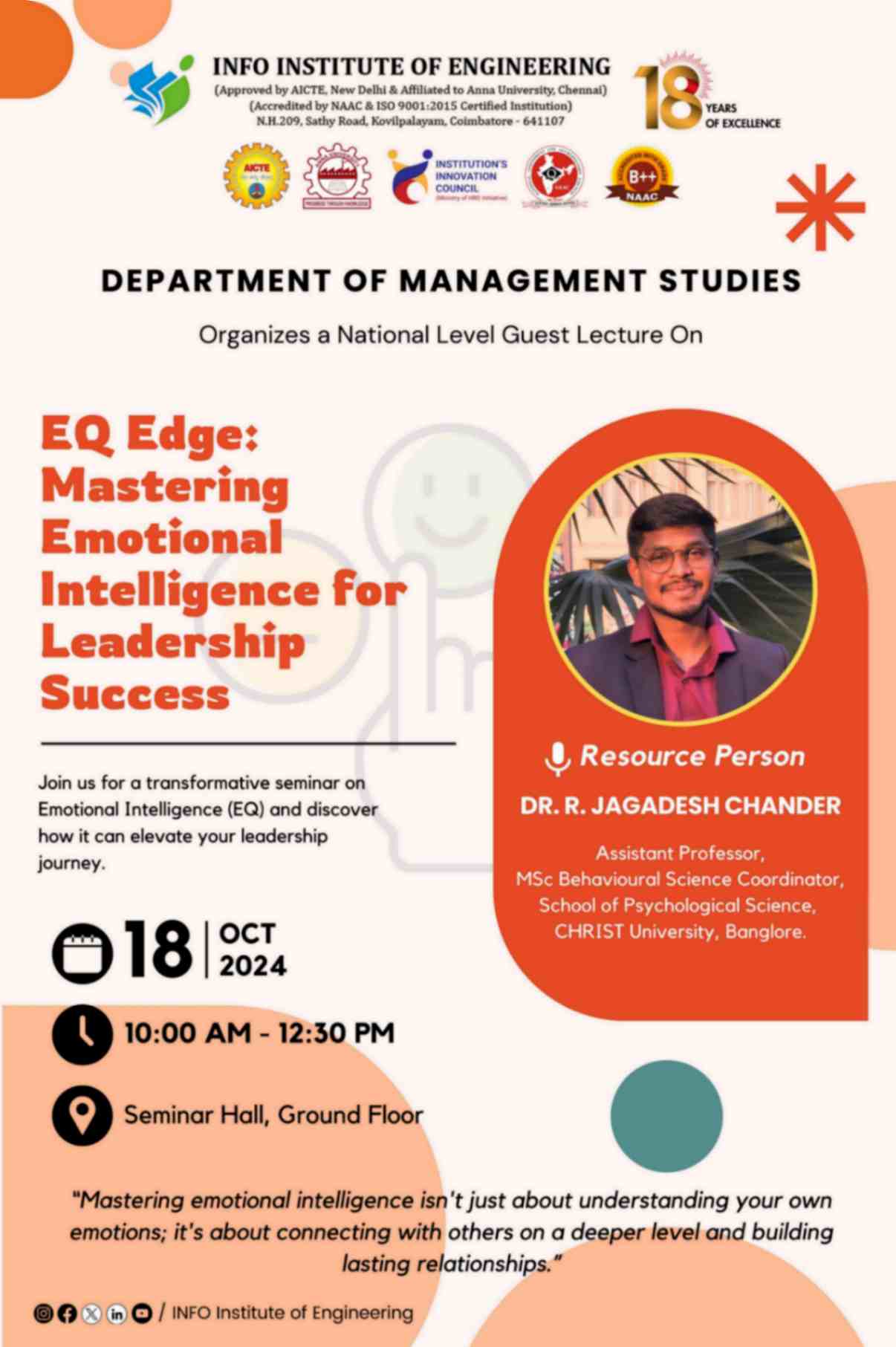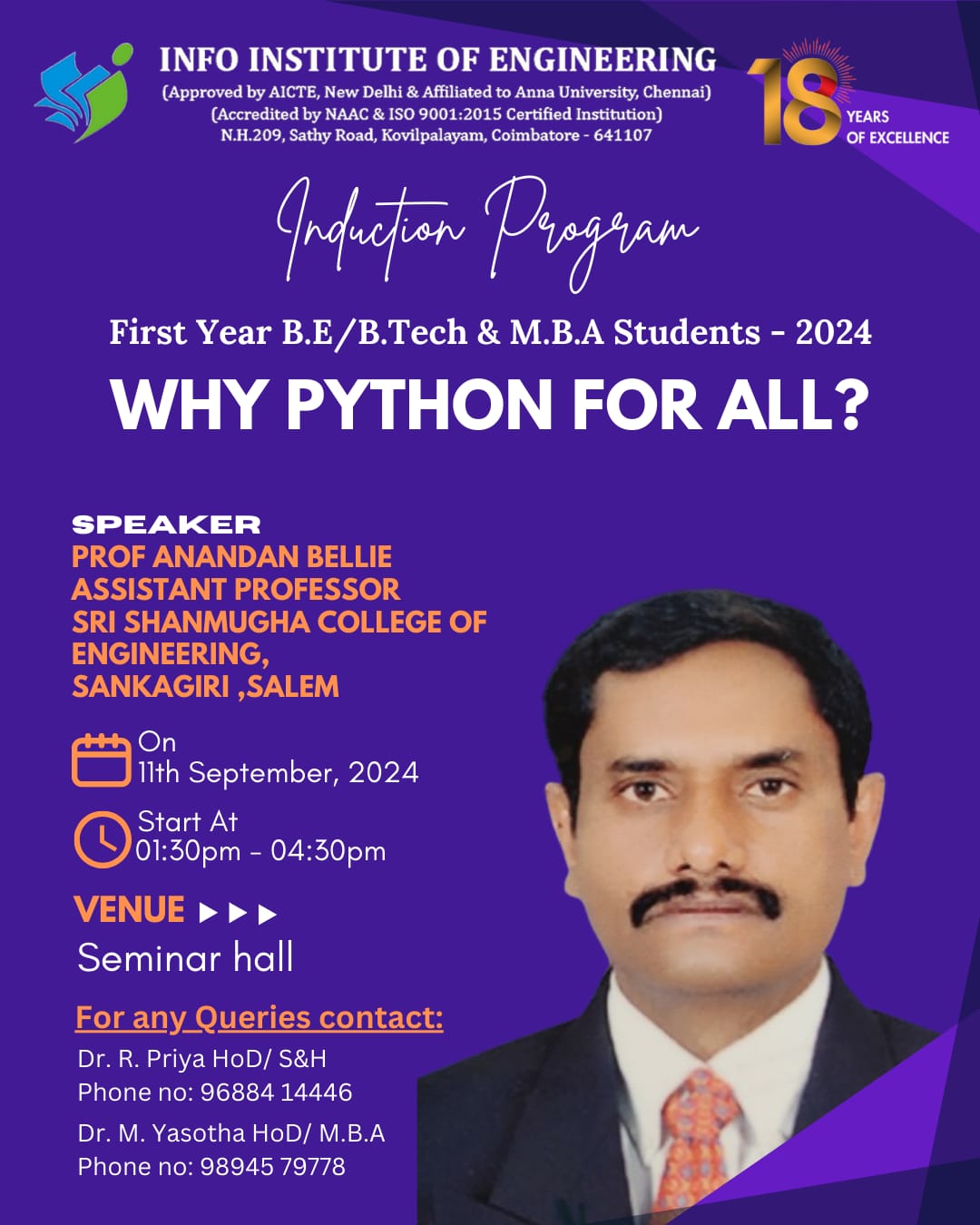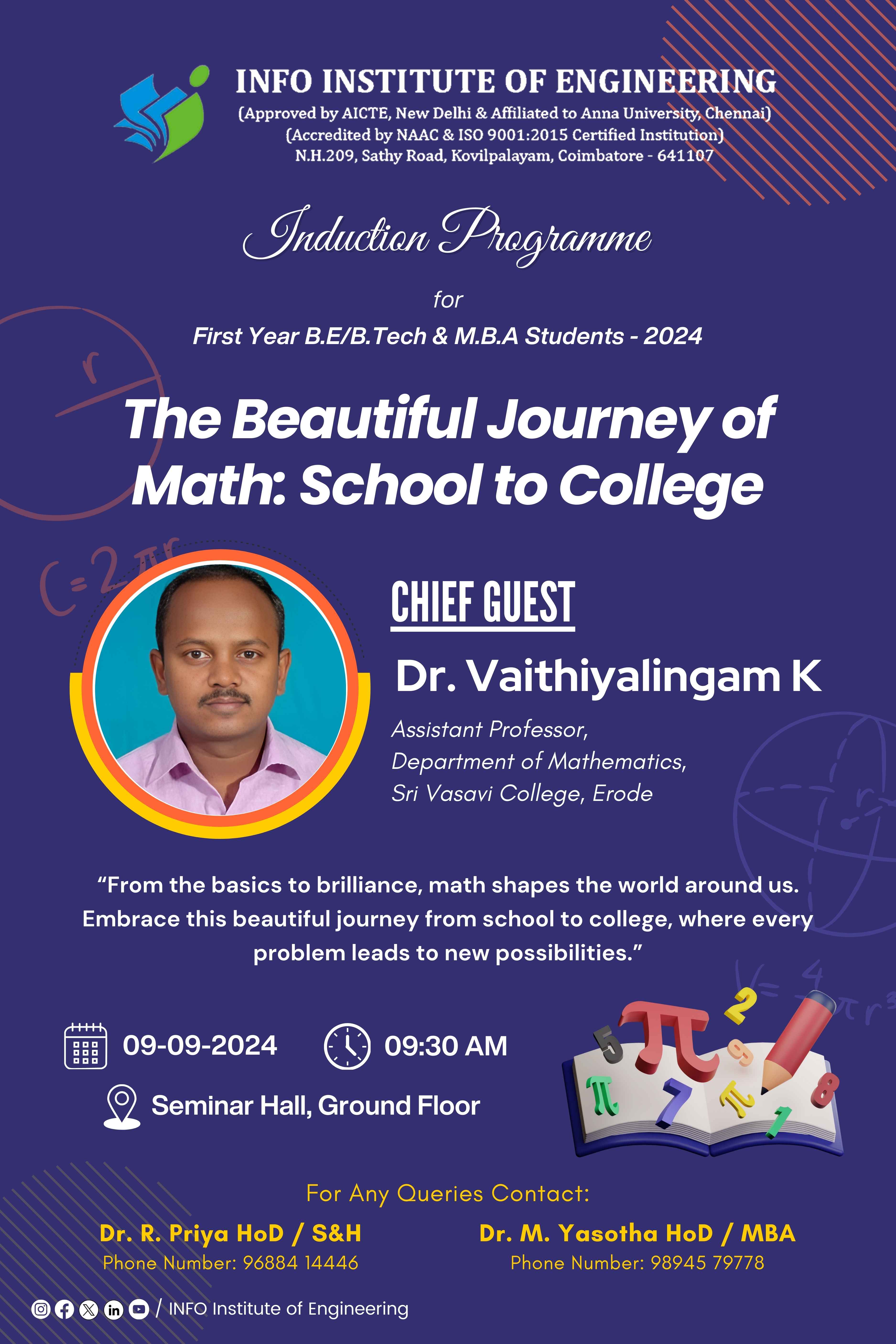 At INFO Institute of Engineering, we believe that perseverance is the key to unlocking success. As part of the Induction Programme for First Year B.E./B.Tech & M.B.A Students – Batch 2025, we proudly present a motivational session on “Keep Going.”