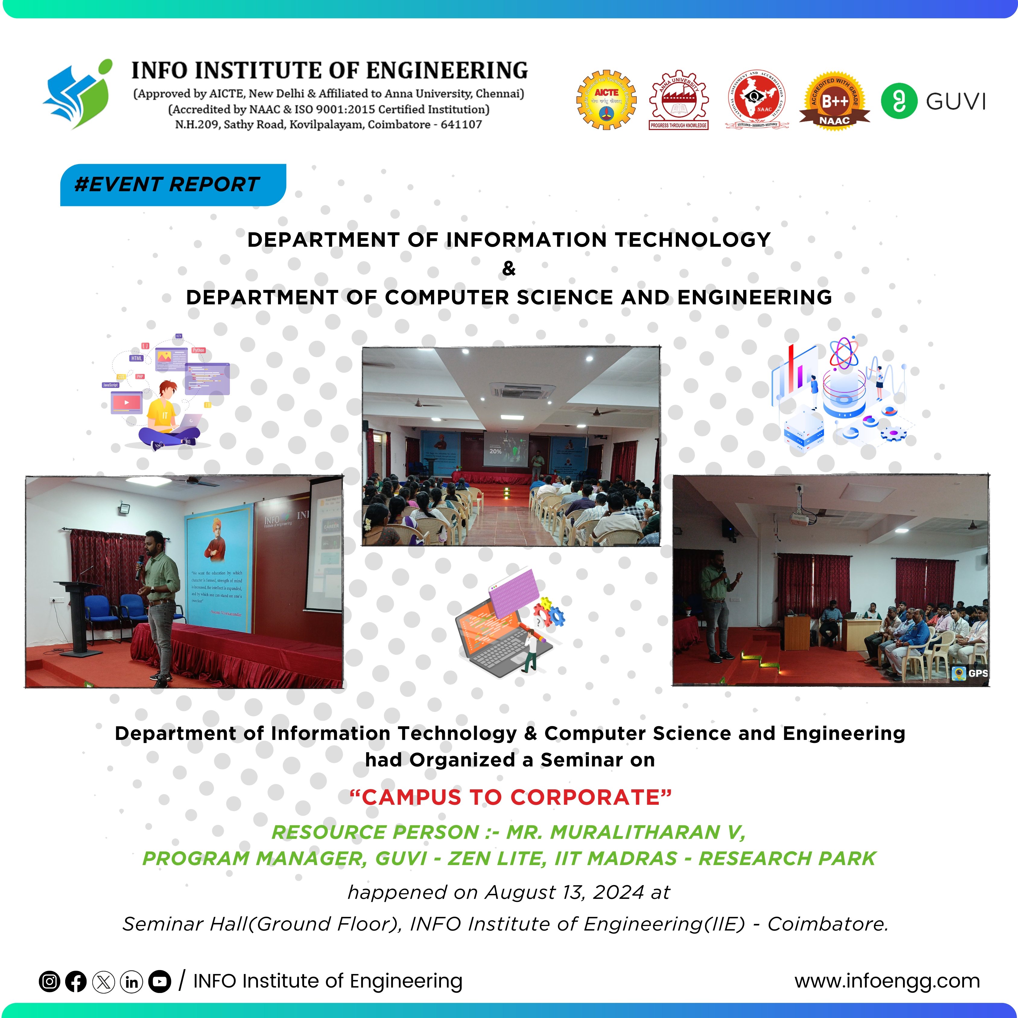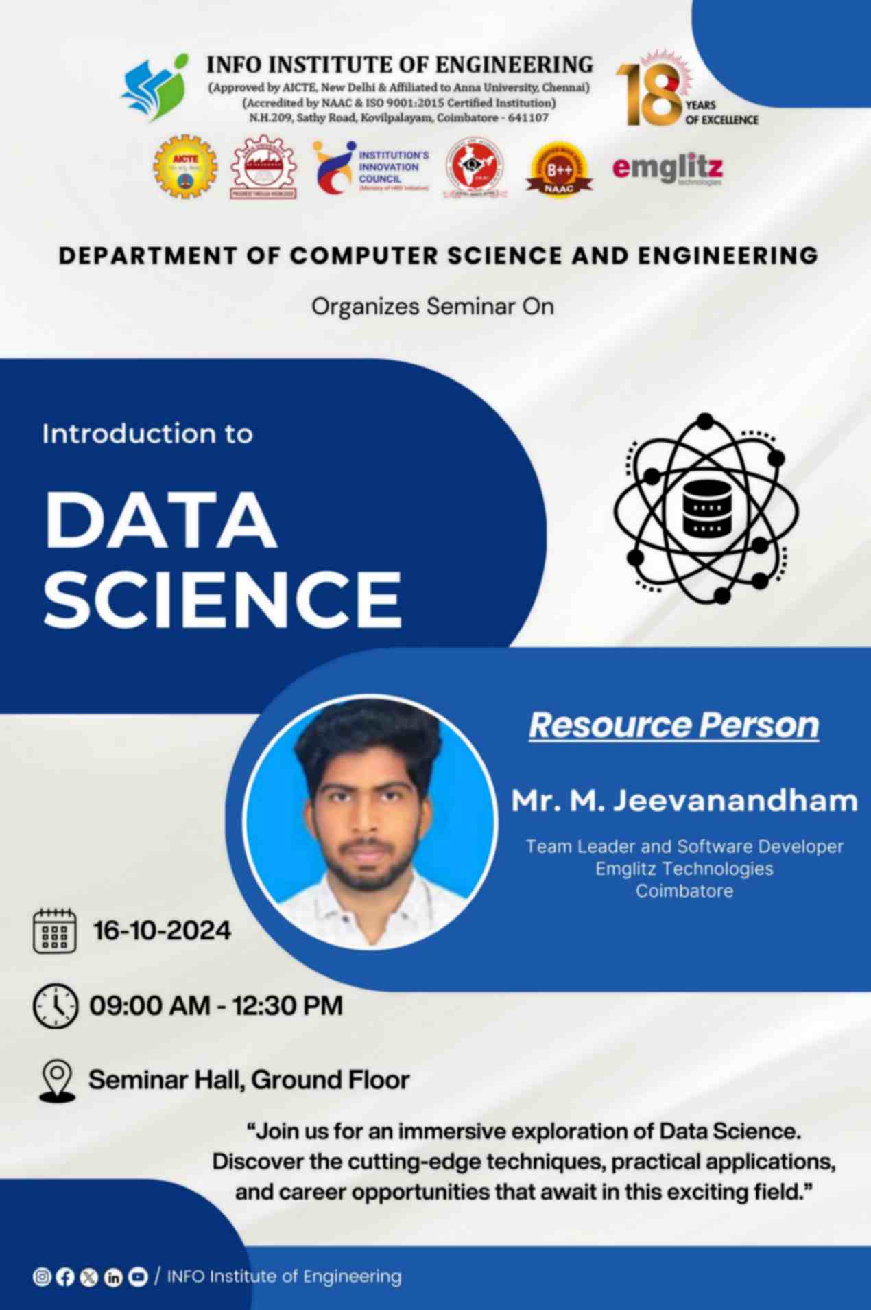 The Department of Computer Science and Engineering, INFO Institute of Engineering, is organizing a seminar on Core Java to empower students with in-depth programming knowledge and real-world application skills.