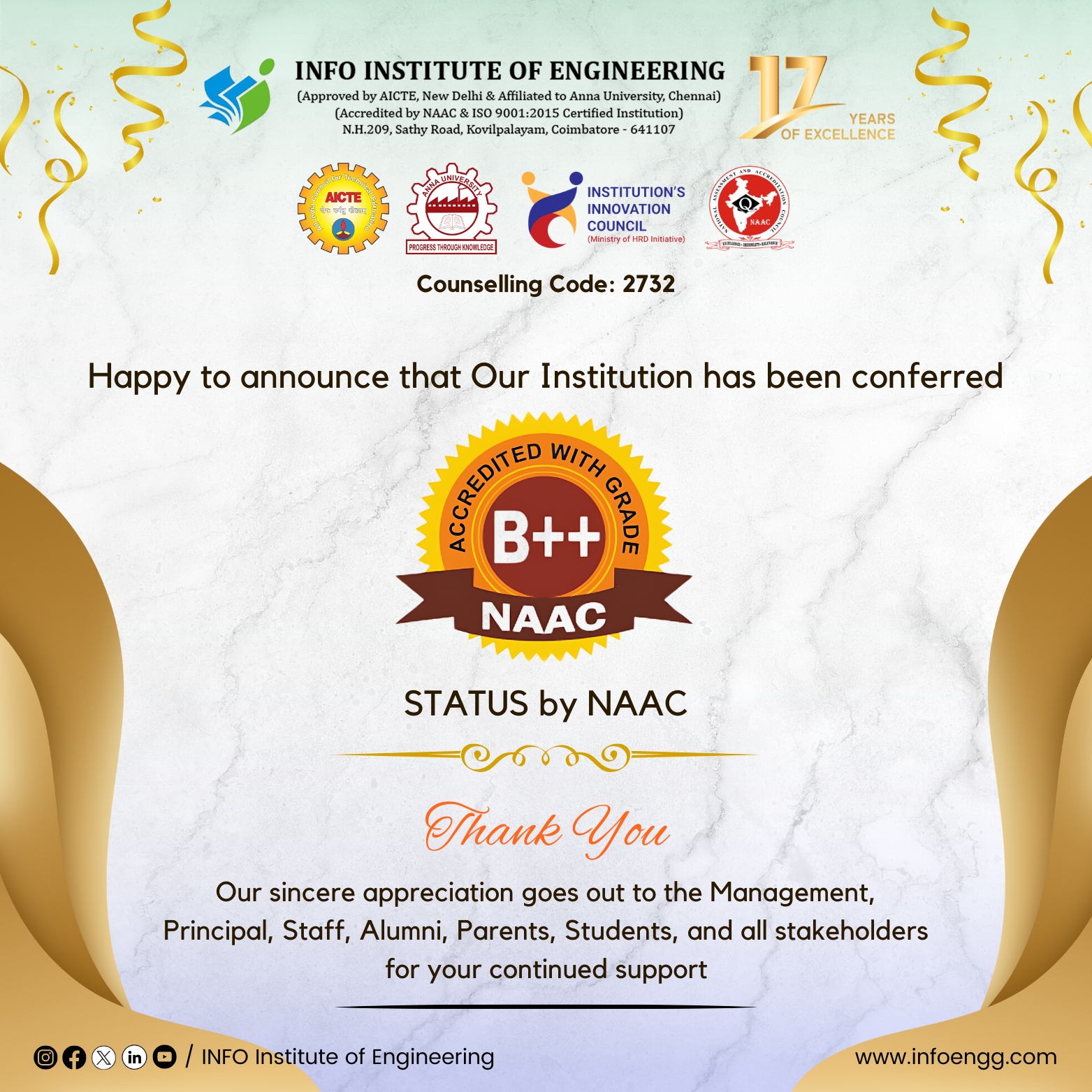 Established in 2007 by Dharbari Charitable Trust, Info Institute of Engineering (IIE) is a dynamic technological institution with a mission to provide highest quality engineering education to its students, encouraging research and entrepreneurship, and molding its students into full-fledged professionals. The motto of the college is to enable the students to not only make a living but also to help them live a quality life by developing futuristic skills.