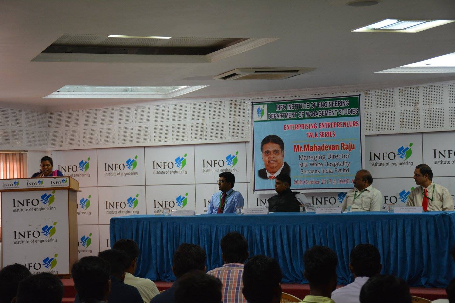 One DayGuest Lecture on "Enterprising Entrepreneur Talk Series " by Mr.Mahadevan Raju, Managing Director, Milk White Hospitality Services India Pvt. Ltd